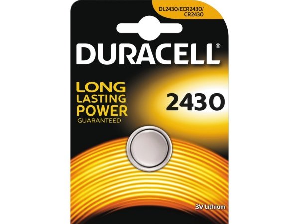Duracell batteri 3V lithium 2430 / CR2430. Et knapbatteri i den velkendte Duracell kvalitet. Pakken indeholder 1 stk. 3V batteri.