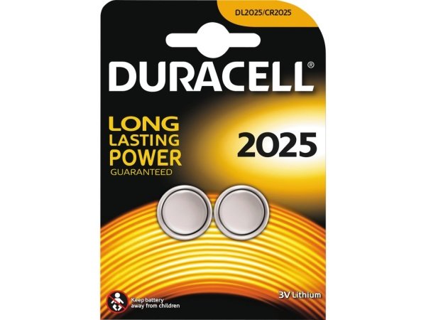 Duracell batteri 3V lithium CR2025. Knapbatterier af høj kvalitet og med lang levetid. Pakken indeholder 2 stk. CR2025 batterier.